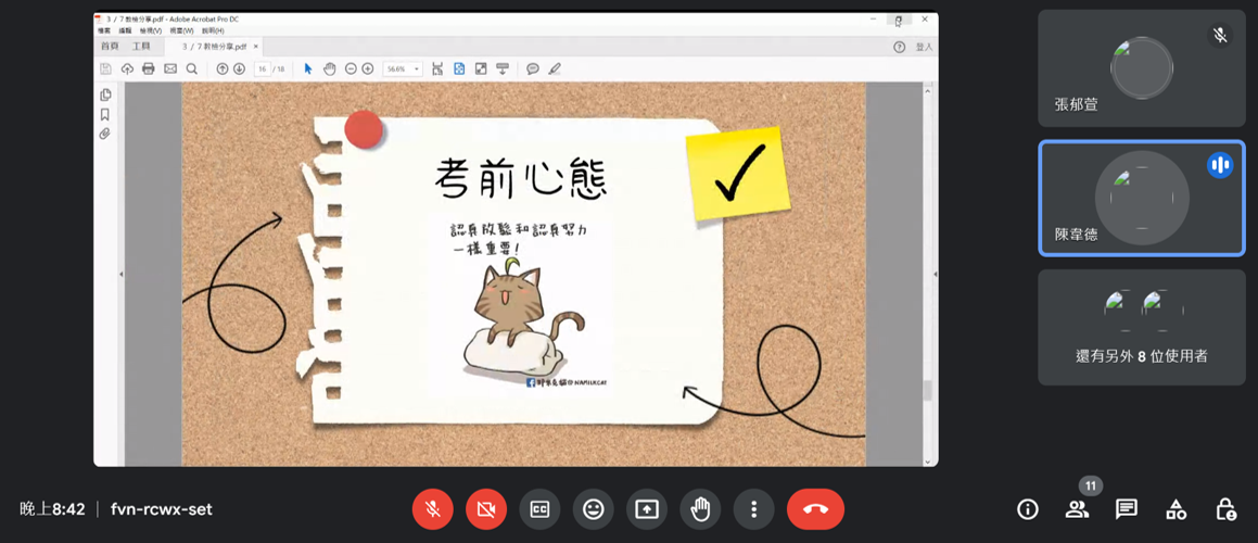 召開8月讀書會聚會:教檢準備方向&手寫題準備。
