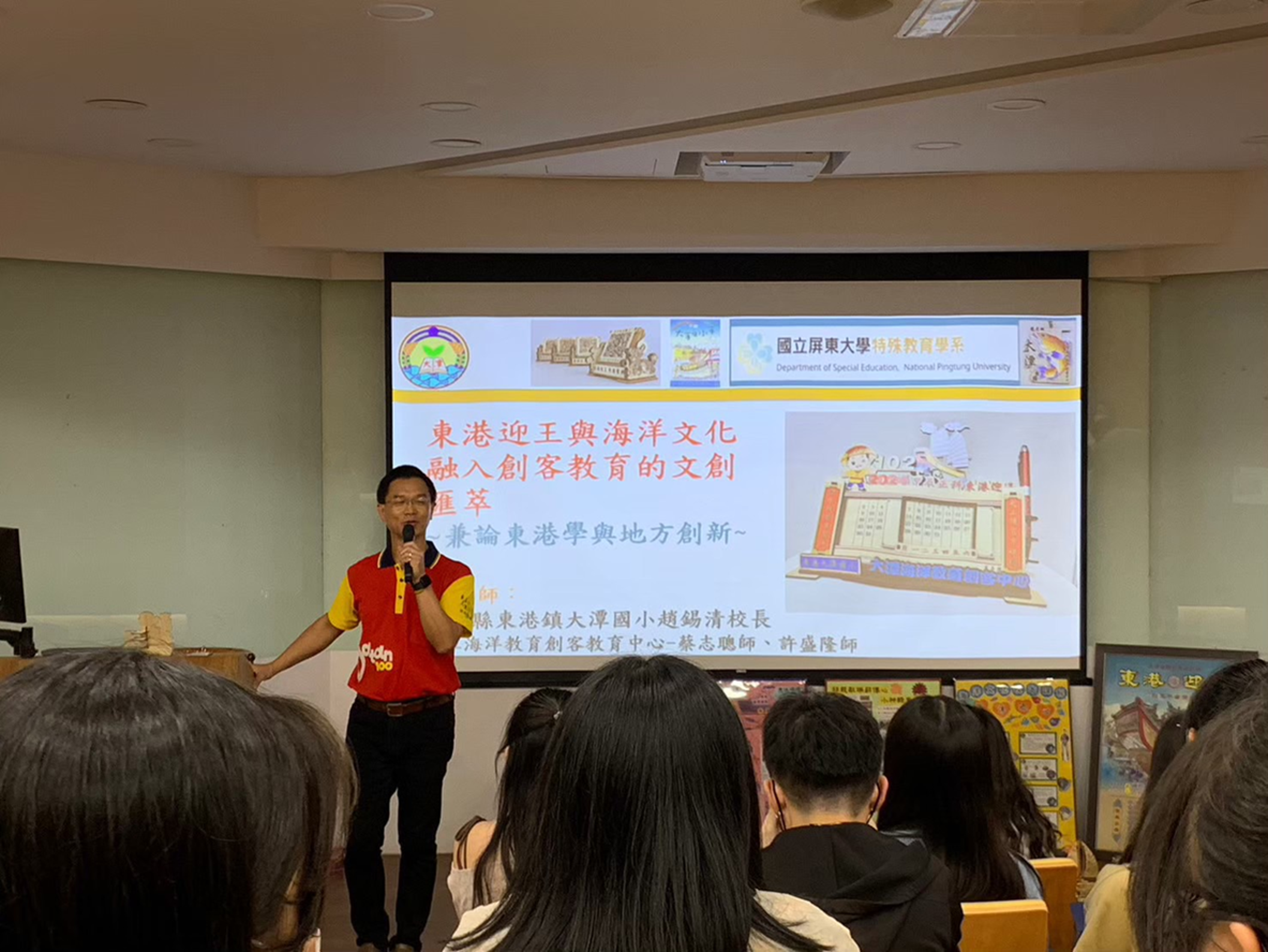 邀請東港大潭國小趙錫清校長、蔡志聰老師、許盛隆老師辦理「東港迎王與海洋文化融入創客教育的文創匯萃」講座,認識屏東在地海洋文化,並分享如何將海洋文化融入課程教學。