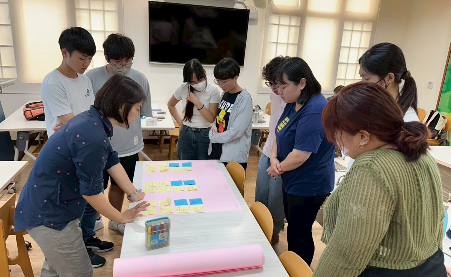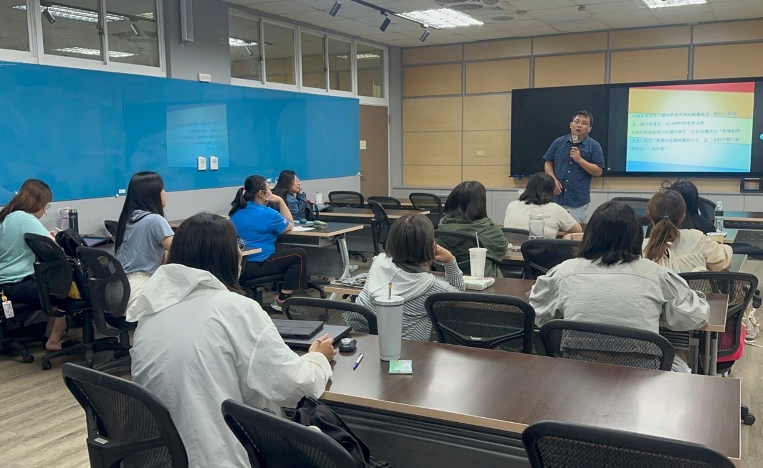 邀請現場教師分享創造力在國小、學前階段的教學重點,並引導學生在各項議題進行創新發想。