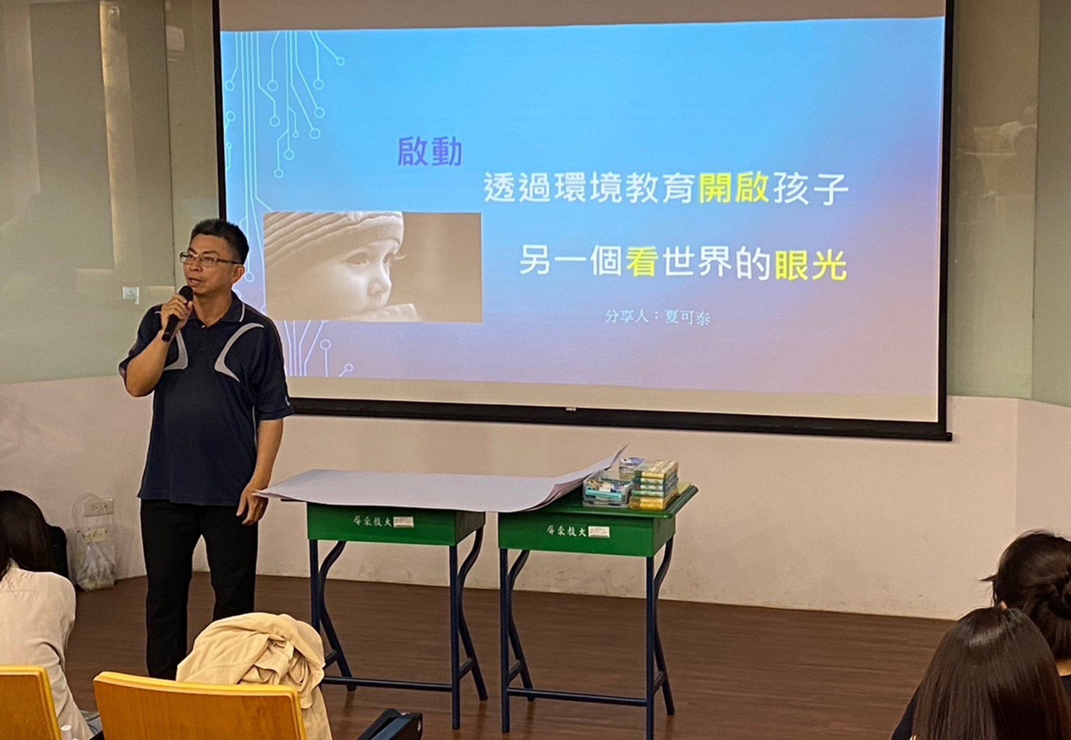 邀請夏可泰老師辦理「啟動─透過環境教育開啟孩子另一個看世界的眼光」,分享環境教育與人類生活的相關性和重要性,活化學生了解環境教育之多元價值。