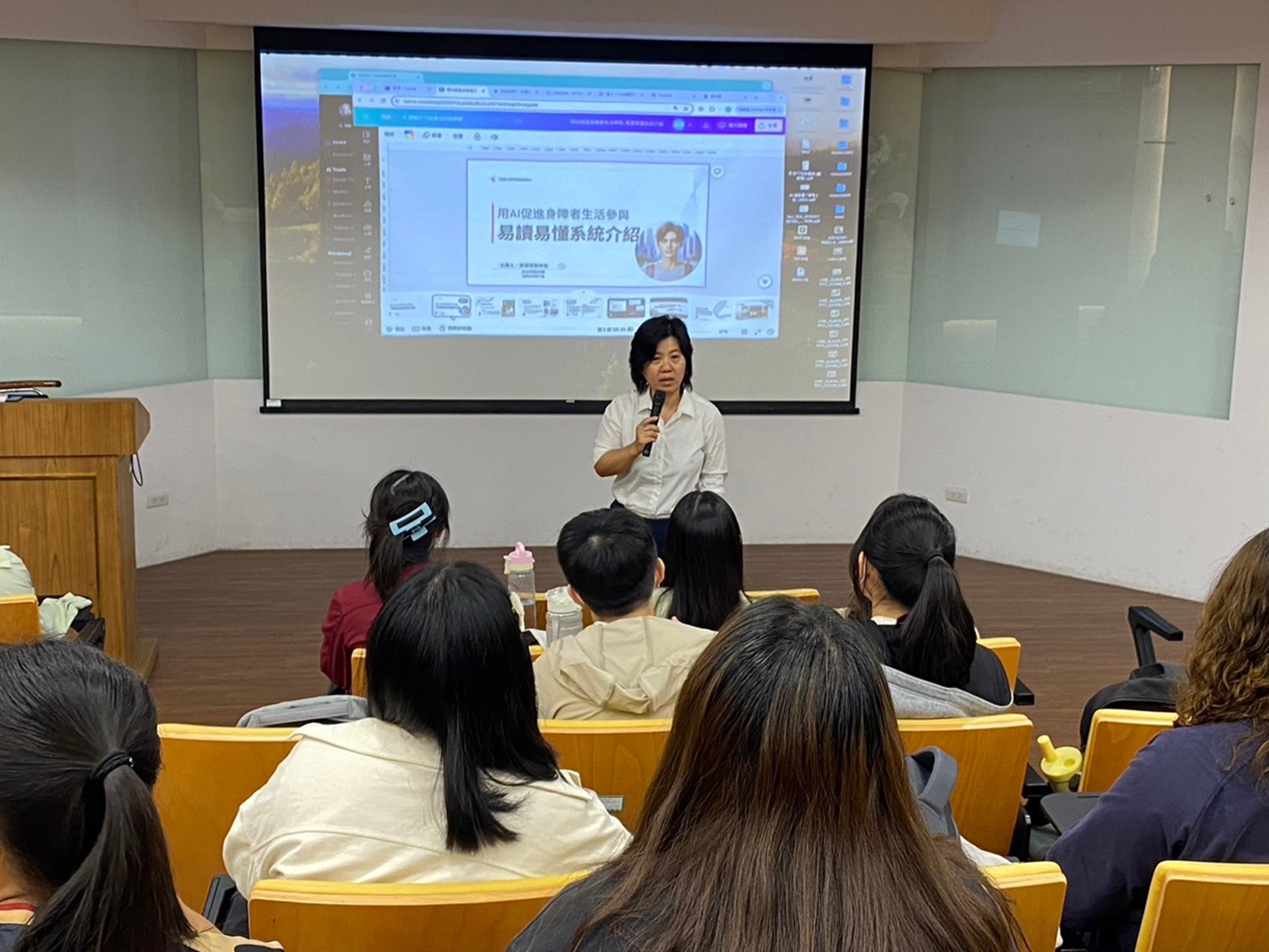 邀請現場教師辦理「用AI促進身障者生活參與─易讀易懂系統介紹」講座,分享世界AI系統發展趨勢與相關應用軟體,將AI影音生成實地應用於特教教學媒材設計。