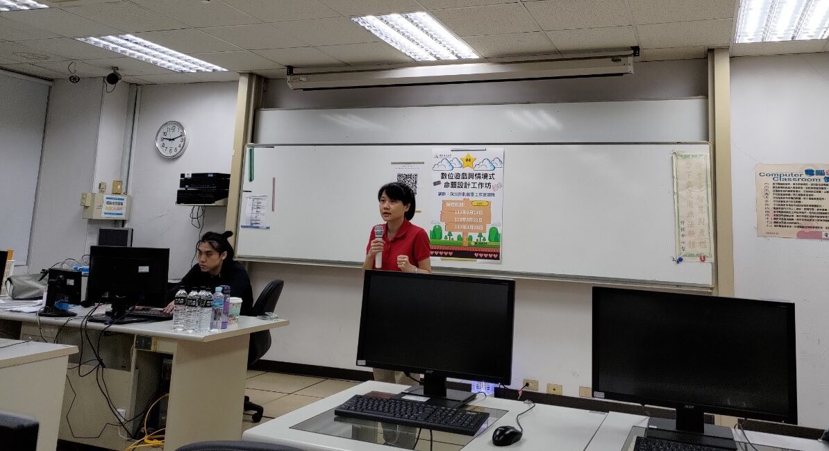 於本校電腦教室辦理「遊戲化情境設計及免程式製作簡易數位遊戲」工作坊。