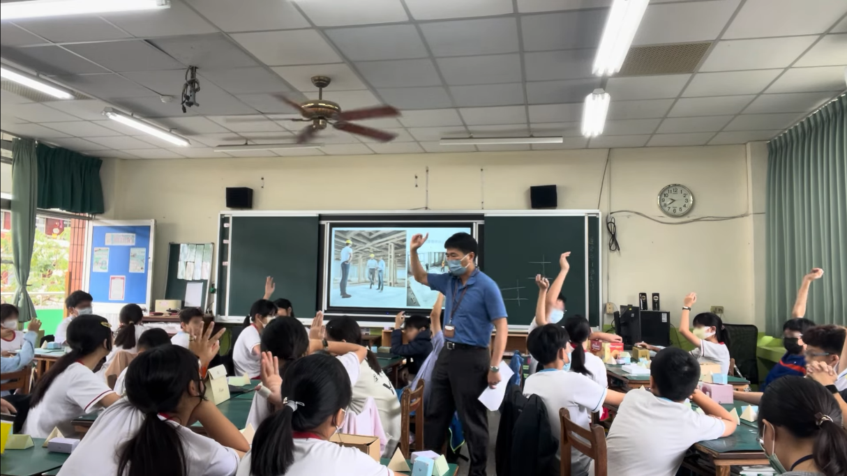 師資培育中心楊志強副教授帶領修習「教學實習」課程之師資生前往屏東忠孝國小,利用以AI為媒材設計之教材進行五年級「數學教學演示(形體關係)」試教及觀議課。
