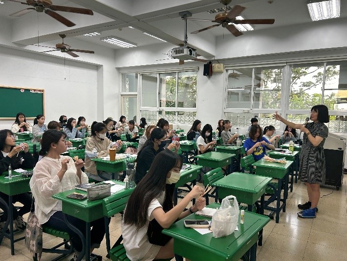 幼兒教育學系邀請業師Susan老師辦理「音樂可以這樣玩」講座,分享音樂融入於遊戲教學,並帶領同學一同體驗。