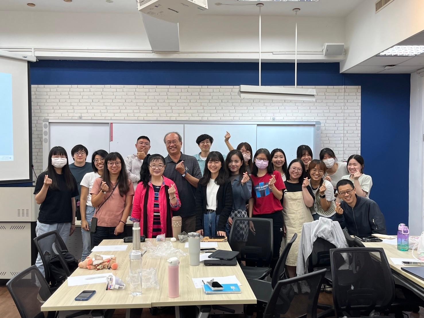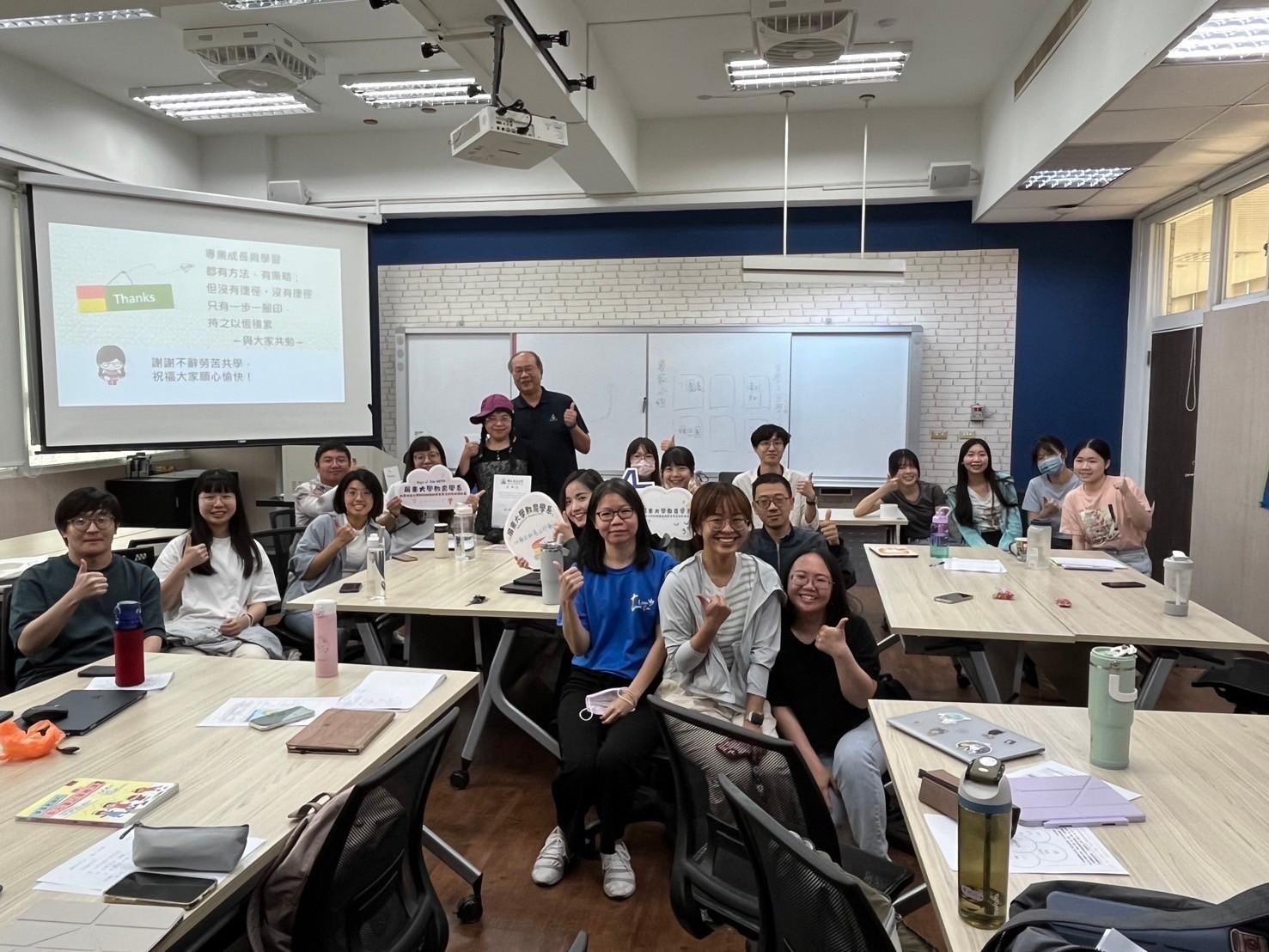 特殊教育學系師資生組成「英文組共讀聚會」,邀請國際學院榮譽講座唐世陶教授分享英語口說技巧,並協助師資生掌握各項英語檢定及海外實習標準。
