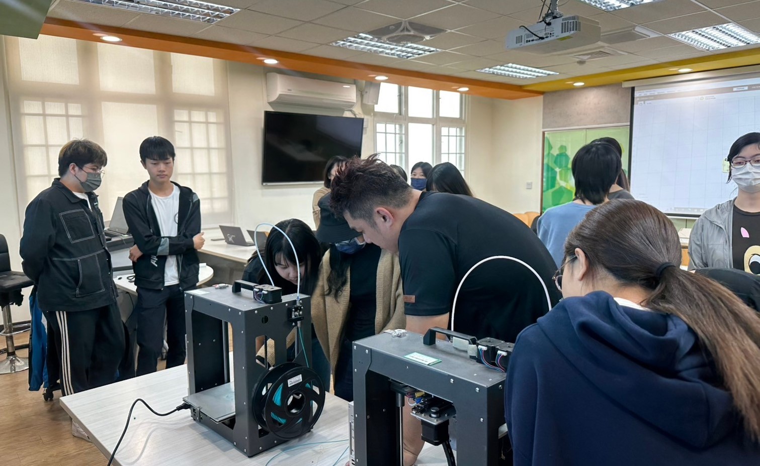 資優教材教法課程邀請資優班老師分享「科技融入資優班課程與教學實務經驗」,說明3D列印機的規則及內容,並讓同學實際操作,了解資優班老師如何運用科技於資優班的課程規劃。