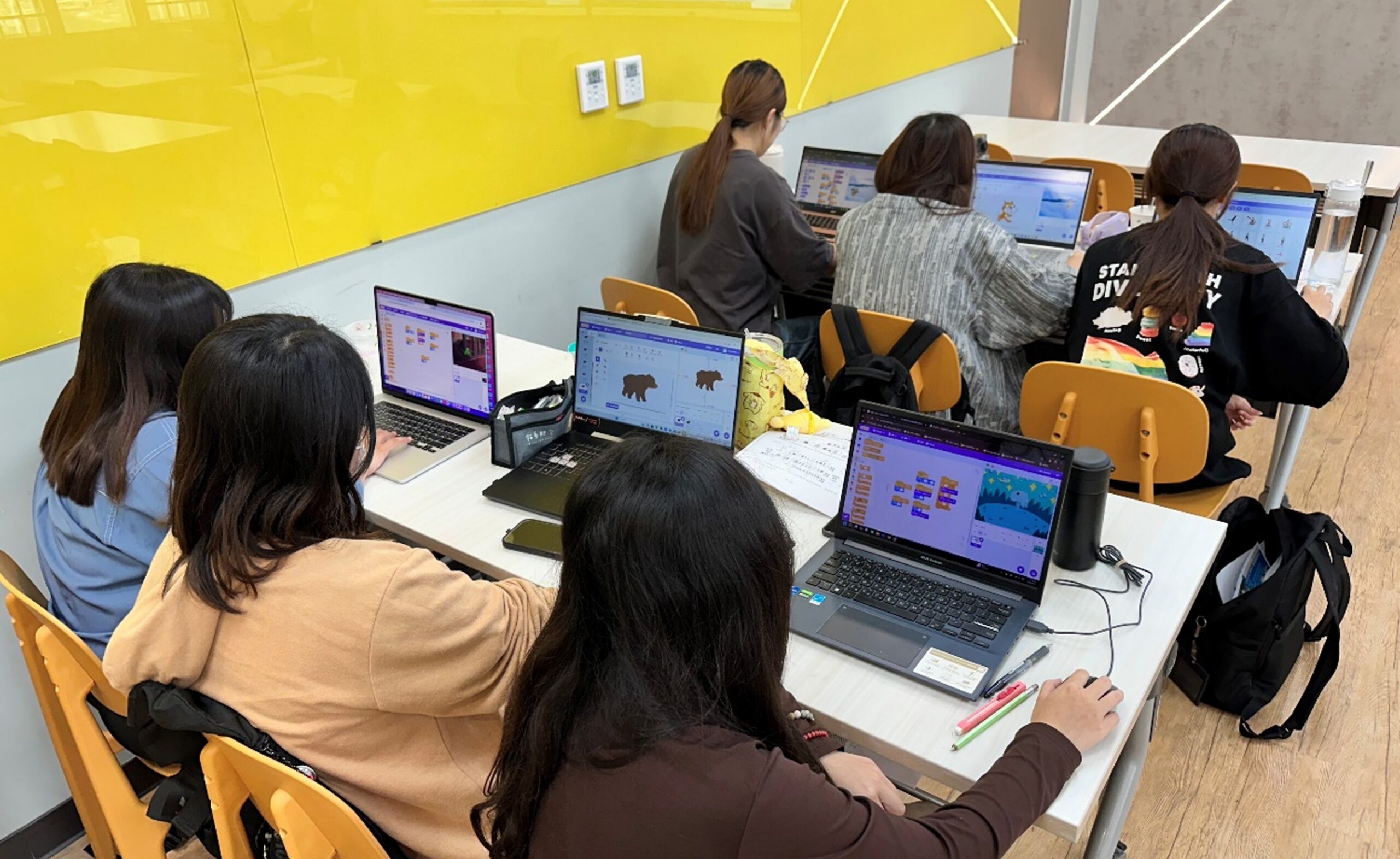 學生學習使用scratch軟體,融入資優班教學內容。