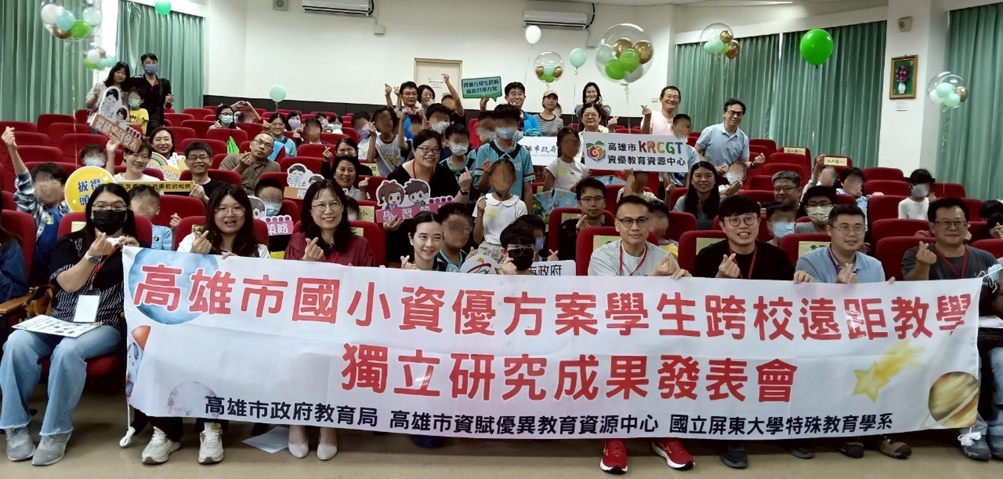 特殊教育學系侯雅齡教授與8位教師跨校協作,共同設計「獨立研究」遠距教學課程,並於高雄苓洲國小舉辦跨校聯合成果發表會,師生分享獨立研究作品與研究歷程,展現學生多元學習成果,促進教師教學經驗與實務技能的深化與交流。