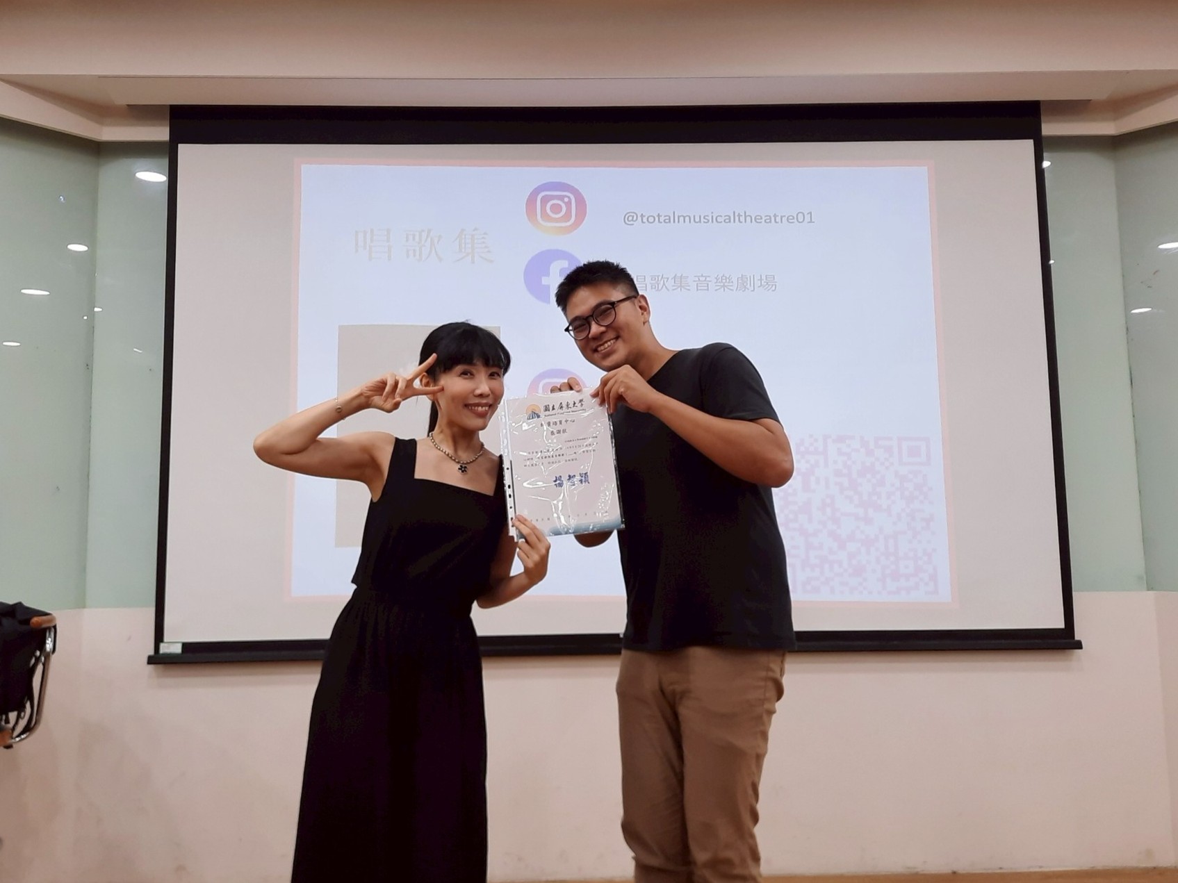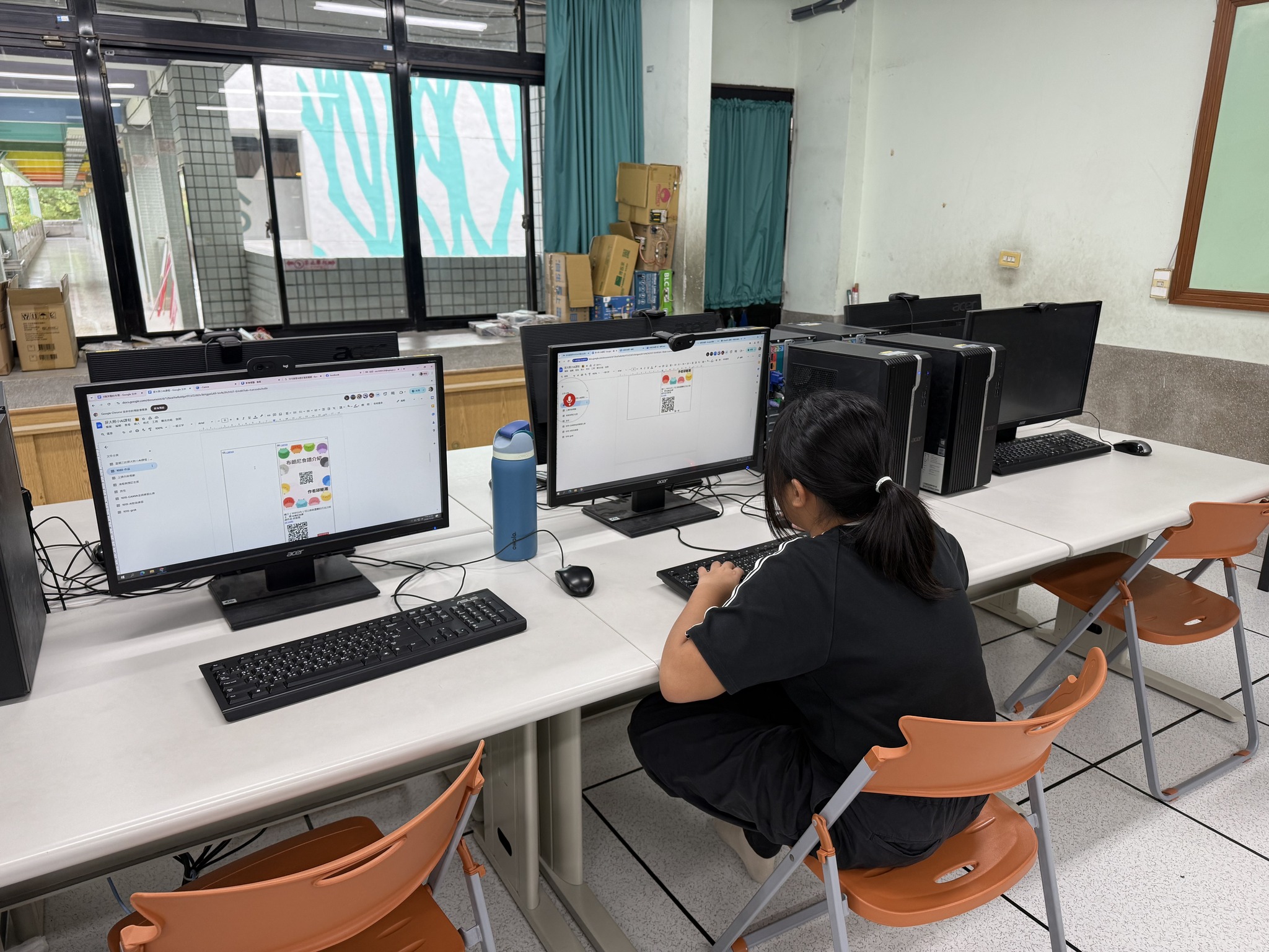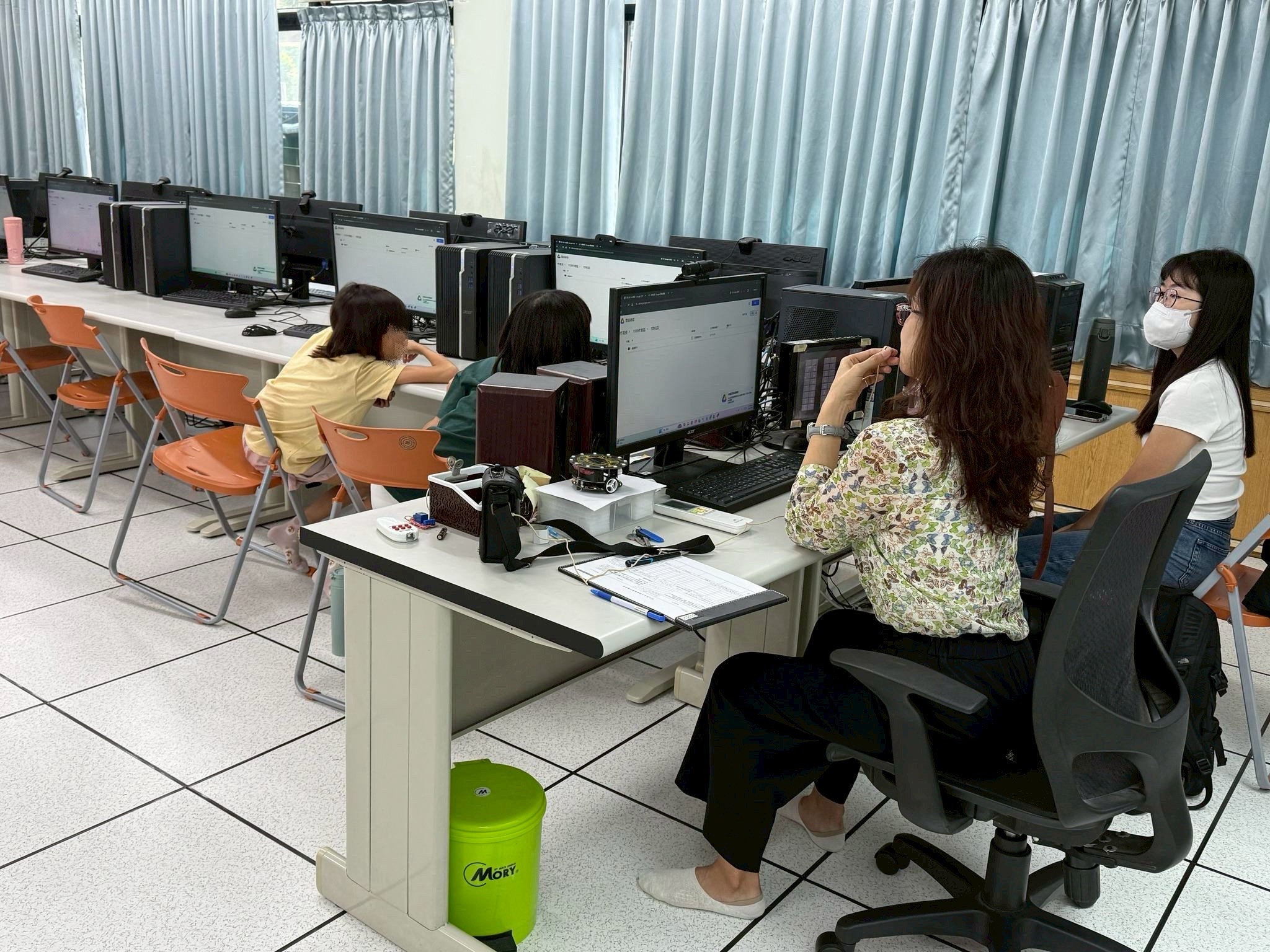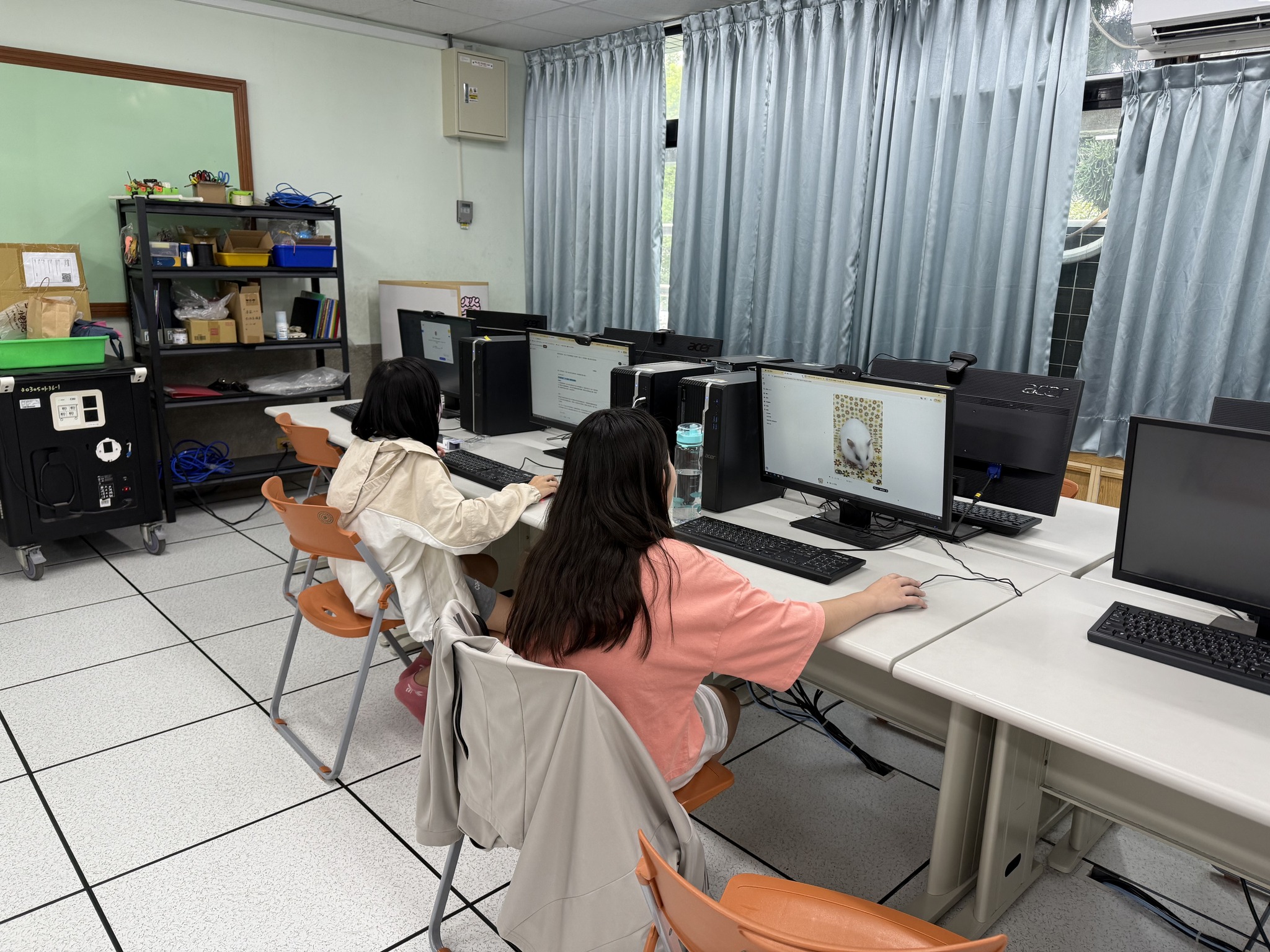 楊志強副教授帶領學生進行「自我主題介紹設計」課程。學生以自身感興趣的主題為內容,運用ChatGPT生成相關圖片,並於另一間教室錄製配音,將聲音與影像整合成完整影片後上傳至YouTube。隨後,學生將圖片與影片QR Code製作成主題卡片。課程中,老師訪問多位學生的學習感想,學生普遍表示語音輸入與AI工具讓創作變得更有趣且具成就感。最後依據學習表現進行評分並頒發小禮物,氣氛熱絡。