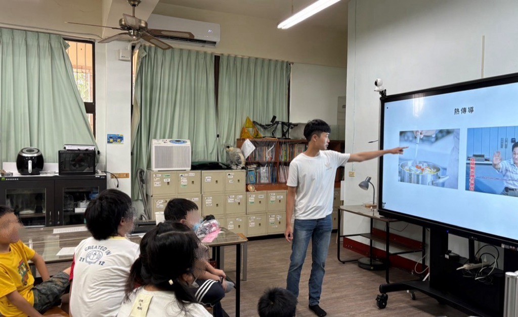 特教系第三組師資生至高雄楠陽國小資優班觀摩與試教,講解三種熱的傳遞方式。