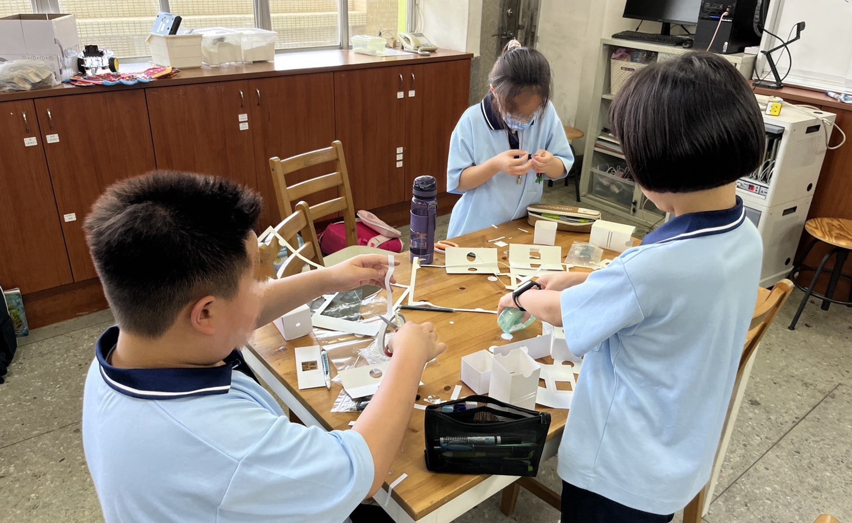 特教系第五組師資生至高雄大同國小資優班觀摩與試教,觀摩學生動手製作簡易投影燈。