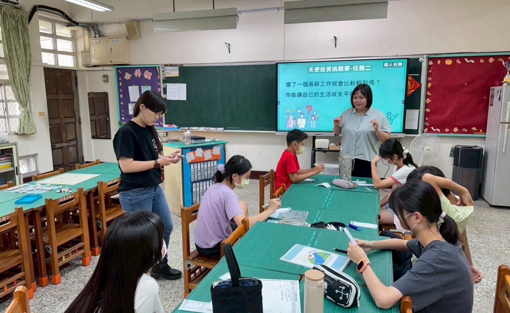 特教系第二組師資生至高雄東光國小資優班觀摩與試教,利用簡單遊戲讓學生學習投資。